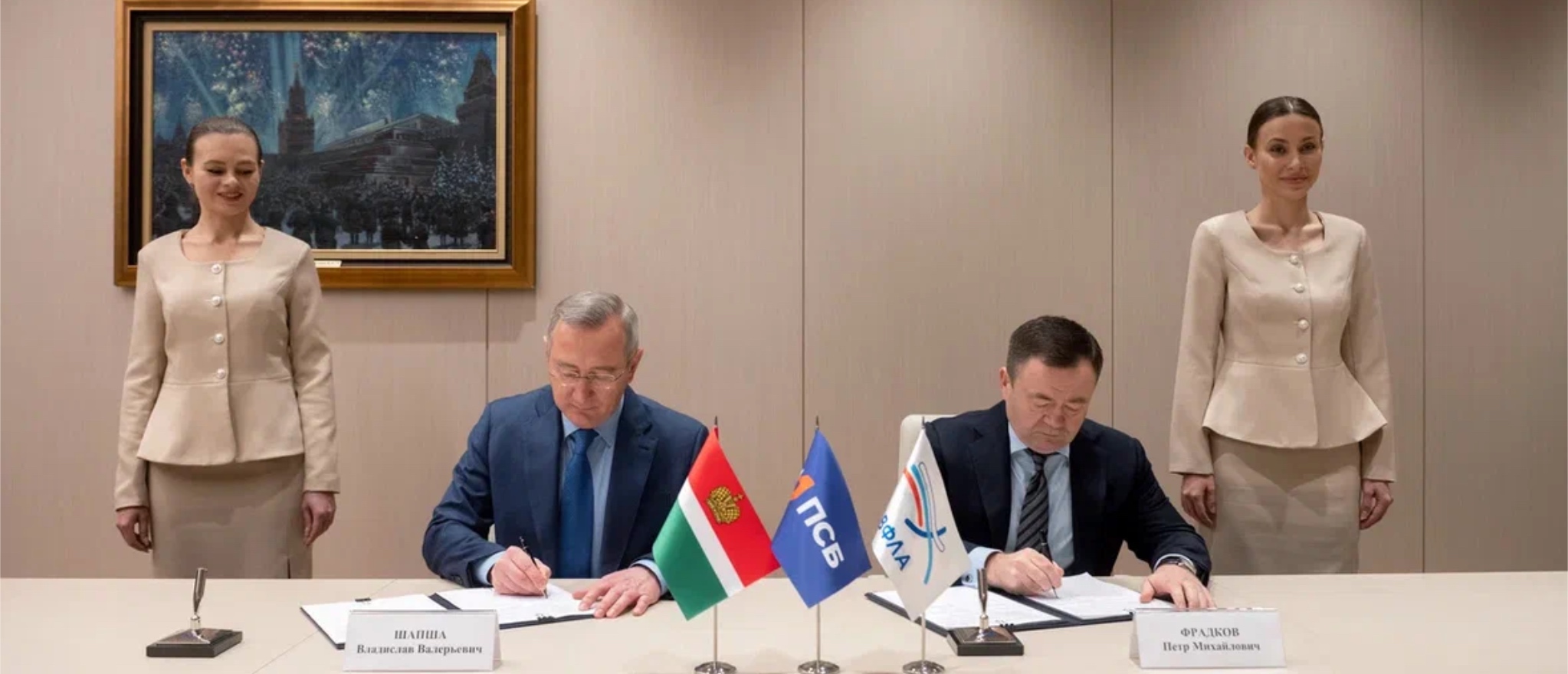 Петр Фрадков, председатель ПСБ, и Владислав Шапша, губернатор Калужской области, подписали соглашение о сотрудничестве между банком и правительством региона, которое продлило сотрудничество в рамках ранее реализованного пятилетнего соглашения с 2020 по 2025 годы.