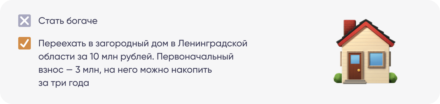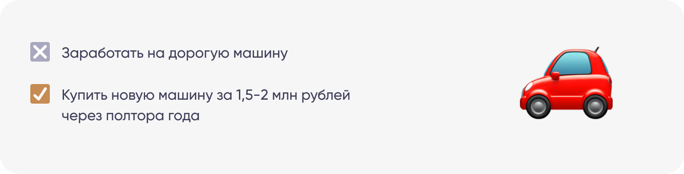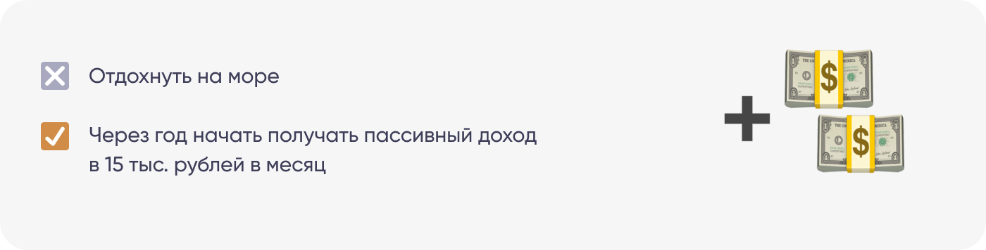 Желание заработать — совершенно понятное, но мы предлагаем приземлить его и превратить в план действий. Для начала нужно ответить на три вопроса: «что», «когда» и «сколько»