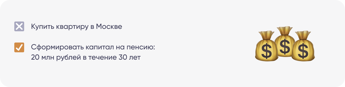 Теперь инвестор знает, к какой цели нужно идти: за полтора года ему нужно накопить полмиллиона рублей. Дальше можно посчитать, сколько нужно откладывать и инвестировать каждый месяц, а потом определить инвестиционные инструменты, которые помогут этого достичь.