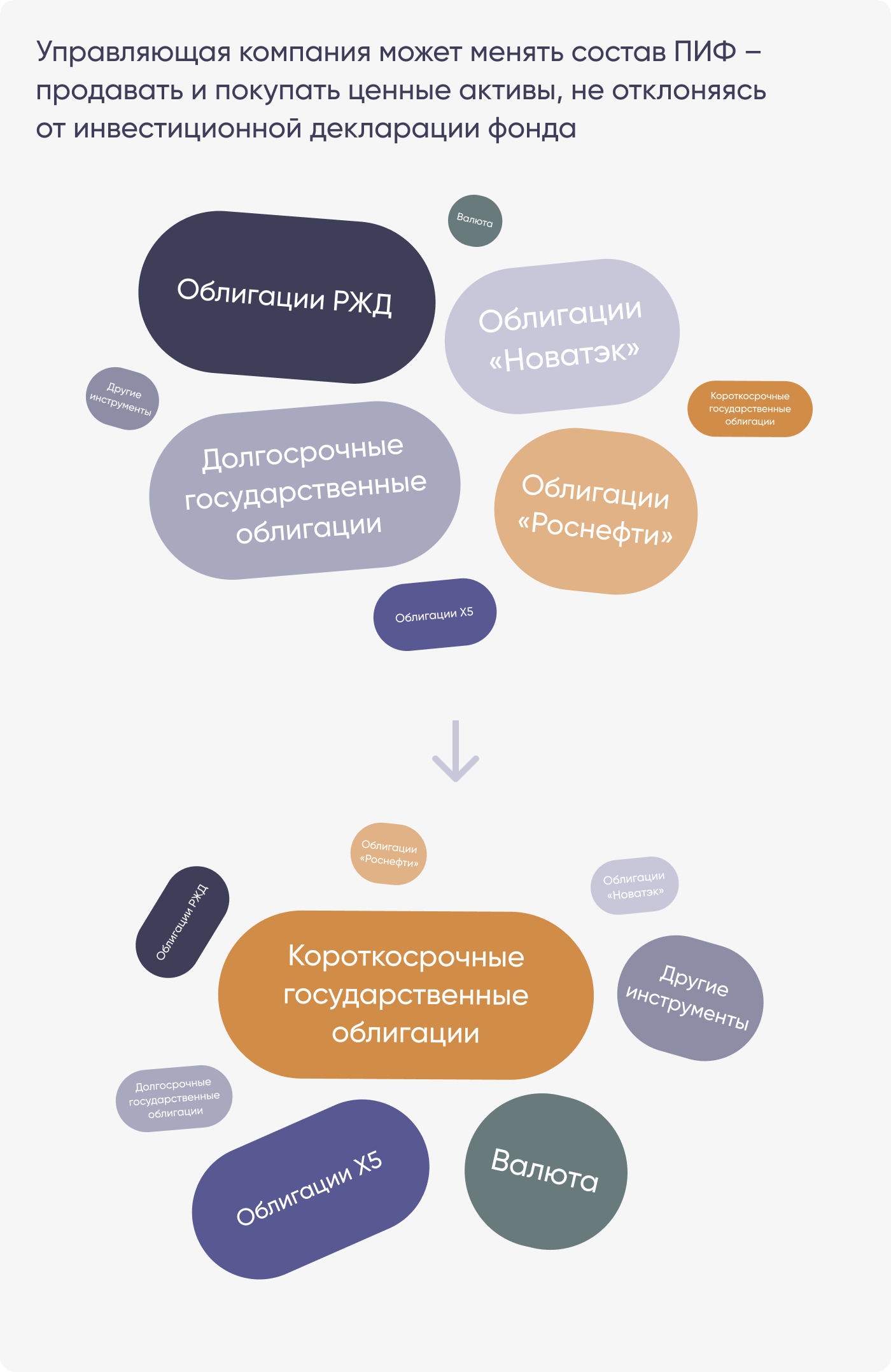 «Приготовлением», то есть управлением ПИФ, занимаются управляющие компании. Они решают, в какие инструменты будет инвестировать фонд и в каких пропорциях. Они же периодически меняют состав фонда, чтобы он приносил большую доходность.