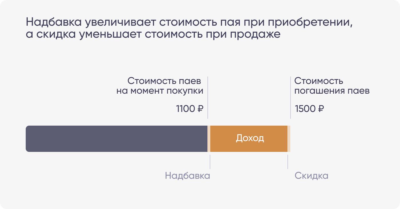 В итоговой прибыли инвестора важно учитывать расходы. При покупке паев инвестор платит УК надбавку, при продаже — скидку.