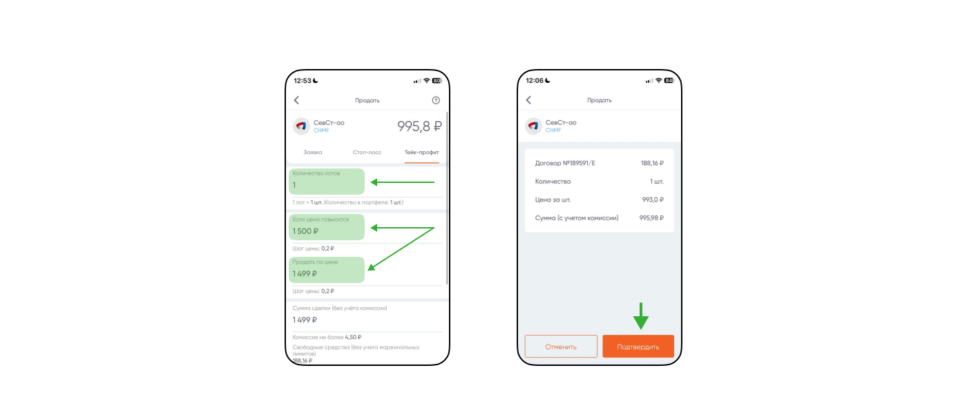 Затем выставить параметры: количество, целевую цену и цену продажи. И нажать «Подтвердить» ↓